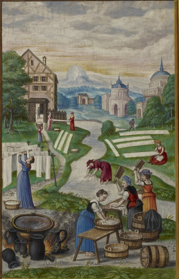 - ↑ https://books.google.ca/books?id=4RYRAQAAMAAJ&q=bouillir+linge+moyen+age&dq=bouillir+linge+moyen+age&hl=fr&sa=X&ved=0ahUKEwi_1tKgofDRAhUhzoMKHZ3IAUwQ6AEILzAE