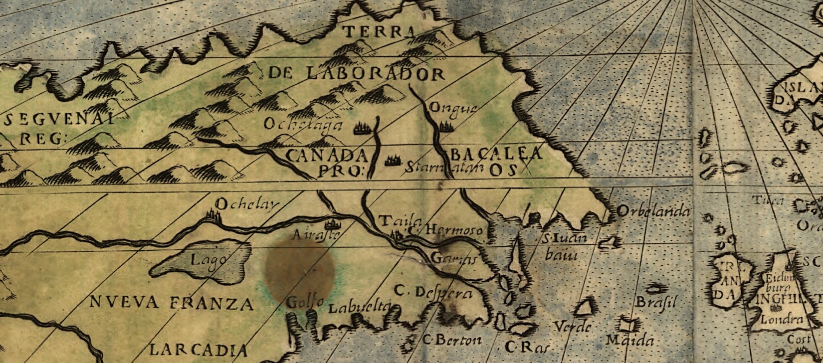 | Карта Паоло Фарлани | https://hallnjean4.wordpress.com/changing-conceptions-of-canada/the-first-king-of-canada-1541/ | ок. 1566 г. | Паоло Форлани |