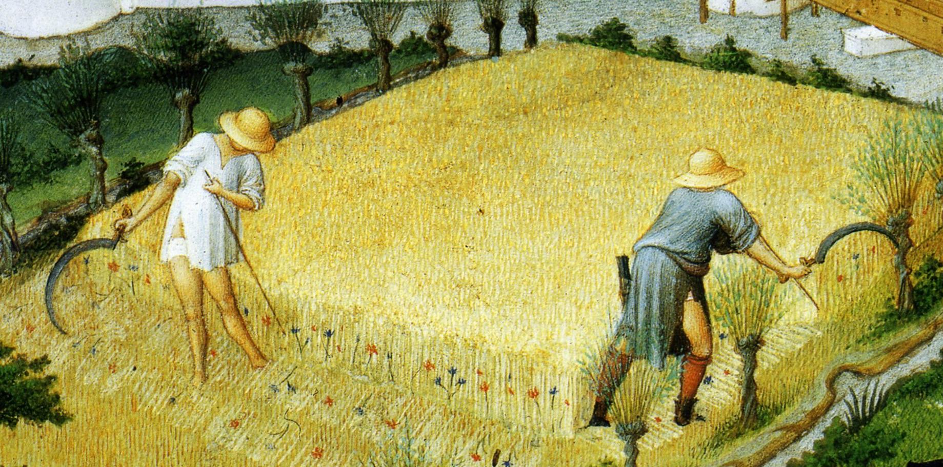 | Сцена жатвы с помощью маховых серпов | perrine mane | 1415 г. | братья Лимбурги |