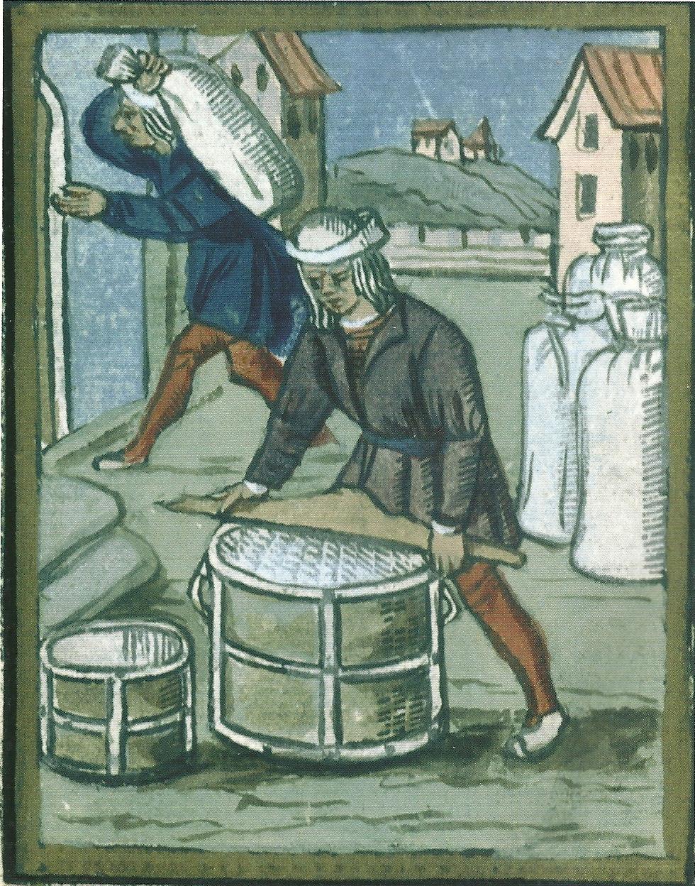 Гравюра на дереве, служившая иллюстрацией к "Королевскому ордонансу о парижском превотстве и эшевинаже" (1528 г), изображает торговлю мукой на парижском рынке. В настоящее время хранится в Национальном Архиве Франции (Париж).